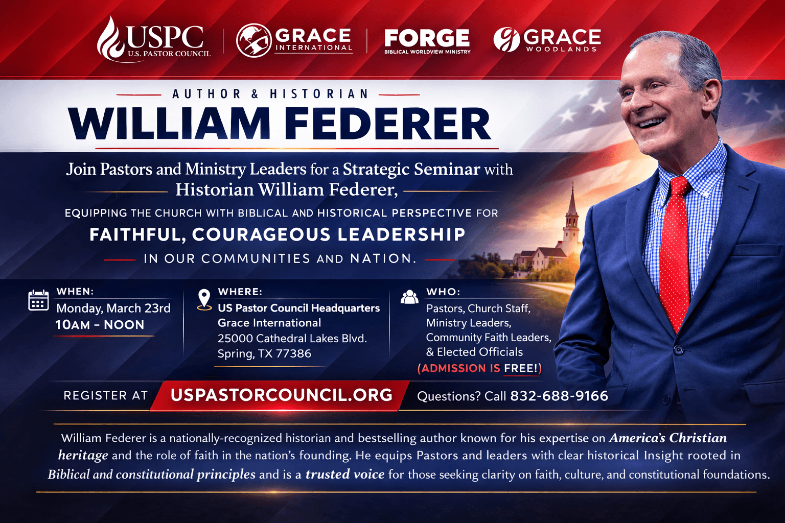 The mission of the U.S. Pastor Council and community or state councils in the USPC network is to empower pastors and their congregations across racial and denominational lines to impact the culture and community through concerted prayer, to equip our congregations for effective citizenship and to provide a unified voice on spiritual, cultural, social and moral issues from a Biblical perspective.